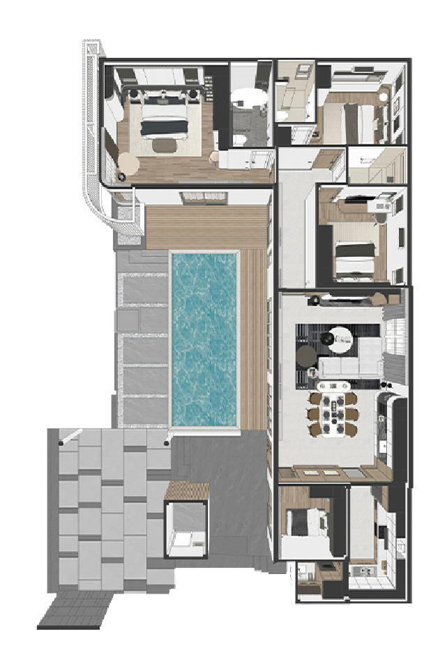 A modern villa crafted with a timeless aesthetic to suit every generation. The open-plan design enhances flexibility, promoting comfort and personal expression in everyday living.